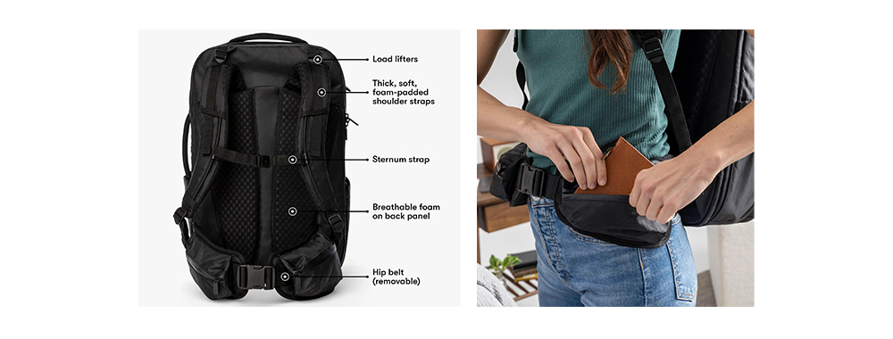 - Ontwerp specifiek voor reizen: Verstelbare borstband en heupgordel, die stevige ondersteuning bieden bij langdurig gebruik.