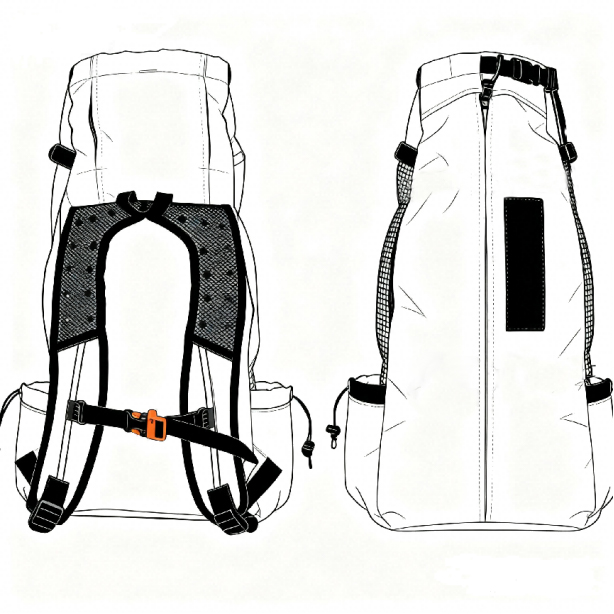 Stap 1:Nadat onze ontwerper de eisen had bekeken, zei hij meteen: "Dit is niet zomaar een rugzak; het is een dynamisch systeem voor het aanpassen van de belasting." De volgende twee weken hebben we ons gericht op het bestuderen van het gedrag van middelgrote en kleine honden. Op basis van onze bevindingen zijn we begonnen met het ontwerpen van de hoofdstof, de materialen voor de bodemondersteuning en de openingsstructuur, om ervoor te zorgen dat alles zowel functioneel als comfortabel was. Het ontwerpproces begon met het maken van eerste conceptschetsen: