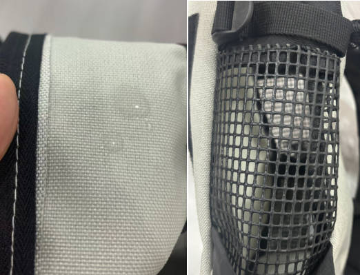 7.Waterdicht en ademend— De onderkant van de stof is voorzien van een waterdichte coating, terwijl beide zijkanten van de rugzak grote ventilatievensters van PVC-gaas hebben. Deze gaasvensters zorgen voor een natuurlijke luchtstroom tijdens het fietsen, waardoor dankzij het drukverschil van de wind een intern luchtcirculatiesysteem ontstaat.
