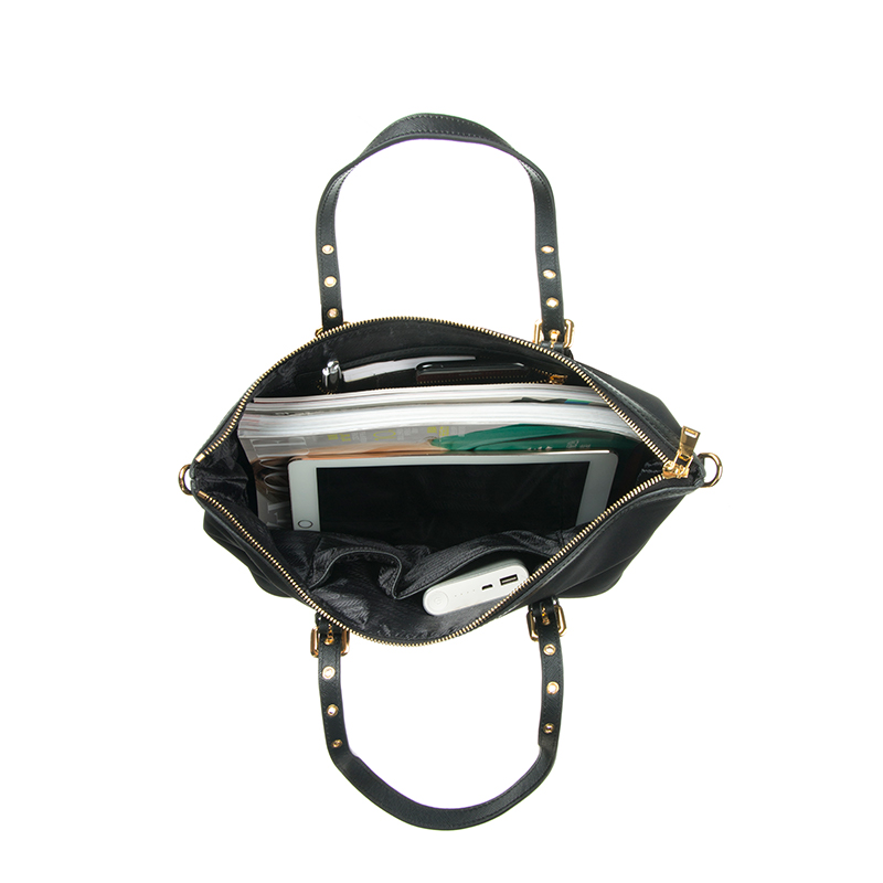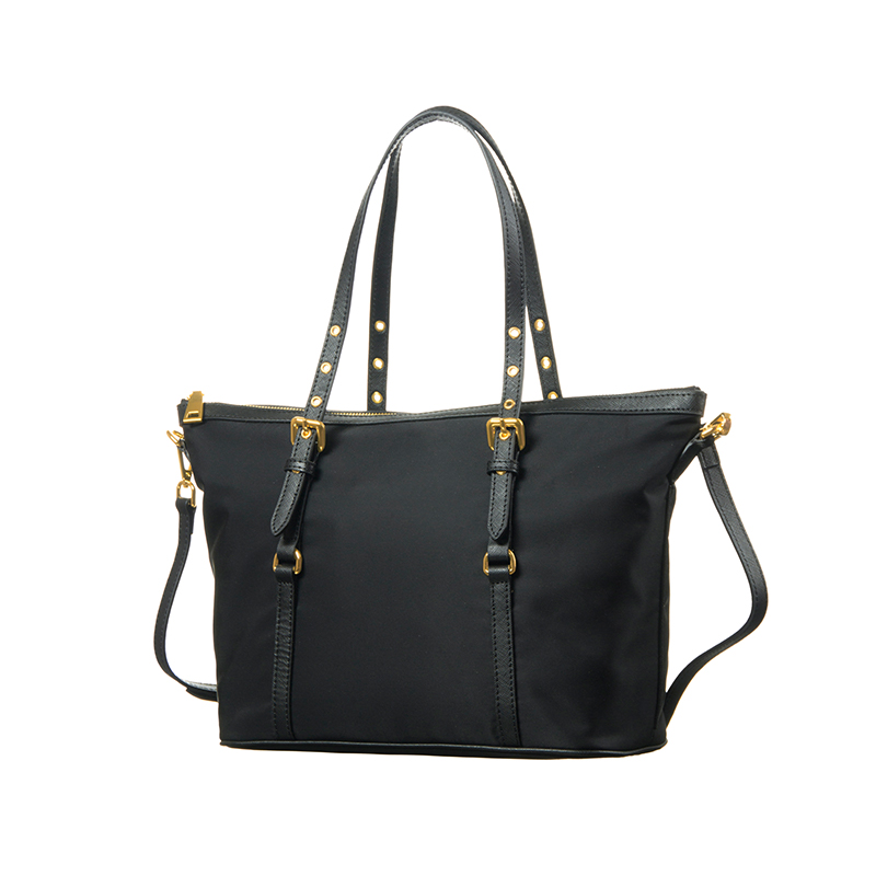 This handbag is a refined interpretation of classic black-and-gold styling, designed for brands seeking timeless elegance with reliable mass-production feasibility. Made with premium black 230D twill nylon and black PU leather, it balances structure, durability, and understated luxury. As a versatile handbag that transitions seamlessly between daily and business use, it fits well into mid- to high-end collections.