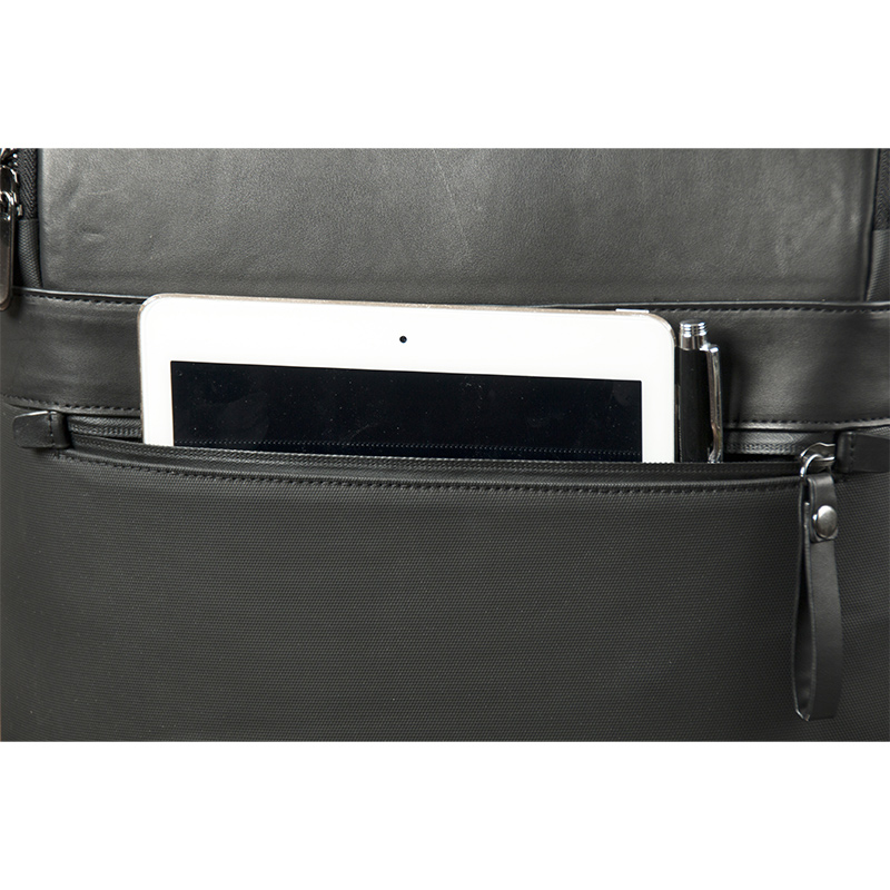 The interior is intelligently divided into three main compartments. The front waterproof-zippered section functions like a mobile office organizer, complete with pen slots, a zippered mesh pocket, and multiple slip compartments for efficient storage. The middle compartment, accessed via dual zippers, is the largest section. It features two finely crafted zip pockets and a padded slip pocket designed to safely store delicate devices such as a compact camera. The spacious, unobstructed interior—naturally supported by the bag’s structured materials—offers enough room to accommodate clothing and essentials for up to two weeks of travel, positioning it among high-capacity traveling bags for men.